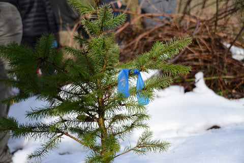 Before digging in, the first task was to tag the plants with red tape so we can track their progress and so people don't mistake them as invasive species. Once the plants were tagged we split into task forces and dispersed throughout the planting area. Once we started digging we realized that the ground was a lot softer than anticipated. The snow was easy to dig into and the soil below was incredibly soft.